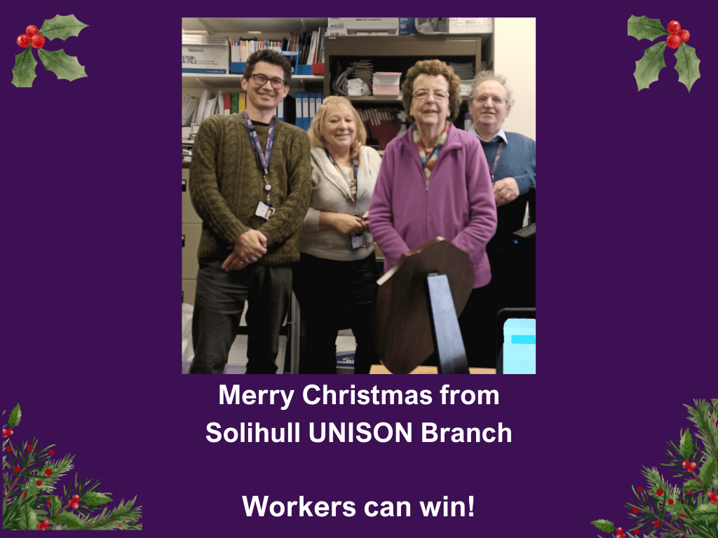 At Solihull UNISON branch, we have enabled workers to organise and ensure that in workplaces they feel supported and safe in order to carry out the essential roles that they do. Whether it is Children’s Services, Adult Services, support staff in schools, housing and homeless teams and every branch of local government including those working in private companies delivering services on behalf of the local authority, workers who are in UNISON have strived to improve working conditions through stewards and branch officers but ultimately through their own actions.